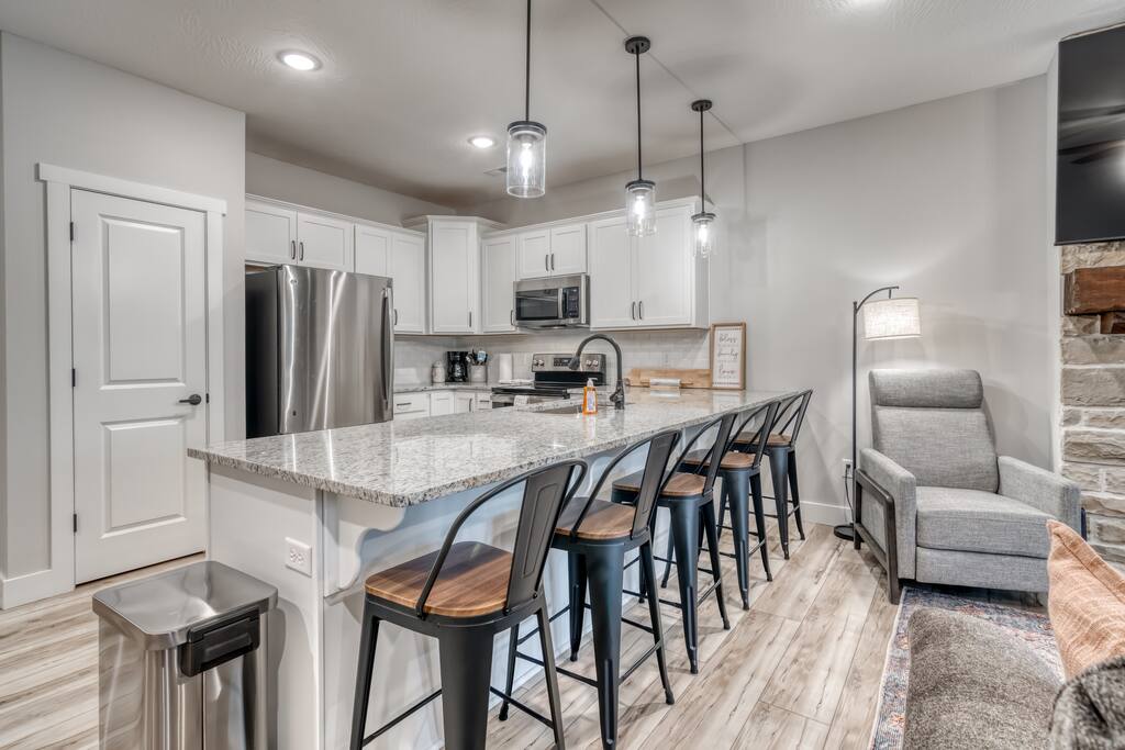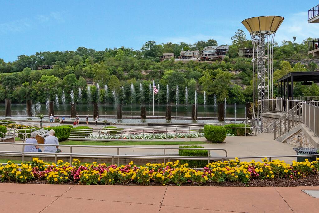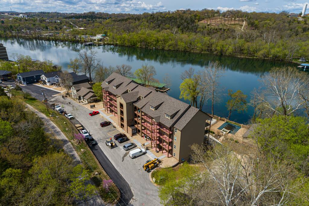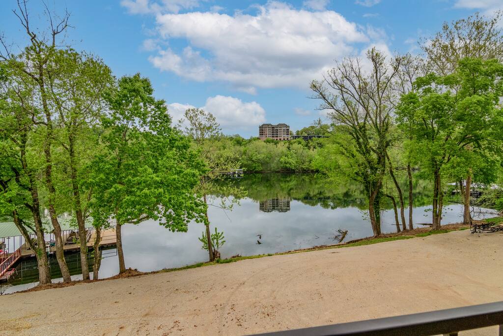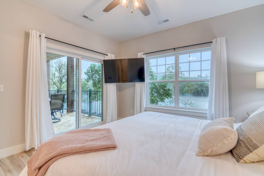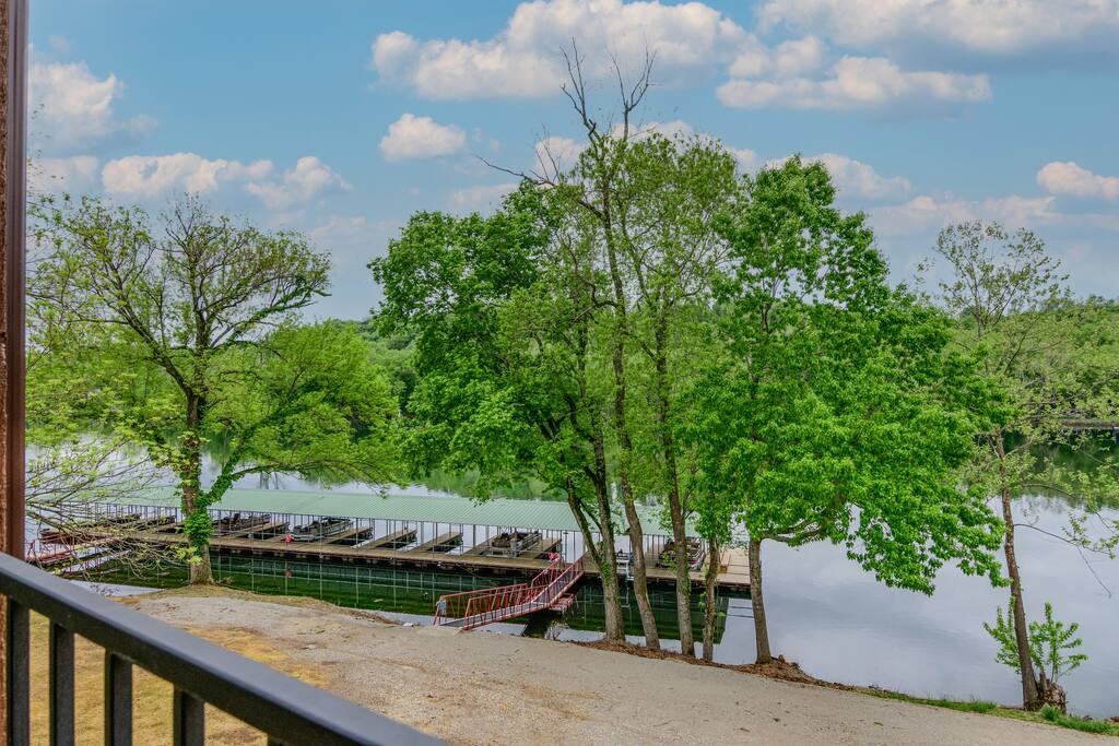 Welcome to our BRAND NEW charming waterfront condo, located on the beautiful Lake Taneycomo, just a short drive away from the Branson Landing. Our 3-bedroom, 2-bathroom condo is the perfect retreat for families, couples, or groups of friends looking for a serene getaway. As you step inside, you'll be greeted by a spacious living area that boasts large windows and abundant natural light, offering breathtaking views of the lake. The open layout seamlessly connects the living room to the dining area and kitchen, making it perfect for entertaining guests or spending quality time with family. There's also a large flat screen TV in the living room for your entertainment. Our fully equipped kitchen features modern appliances, granite countertops, and everything you need to prepare delicious meals. The dining area has a six-person table and chairs, perfect for enjoying a meal with loved ones. Or you can step outside and take dinner to the deck, where you can relax, unwind, and watch the stunning sunsets over the lake. Each of our three elegantly appointed bedrooms includes a comfortable king bed, ensuring a restful night's sleep. The bedrooms also feature flat screen TVs, perfect for relaxing after a long day of exploring the area. The two bathrooms have fresh towels ready for you to use during your stay. In addition to the stunning lake views, our condo complex offers a range of amenities, including a swimming pool (hot tub is currently under repair), fire pit, playground, and easy access to Lake Taneycomo. Whether you want to take a dip in the pool, fish from the bank, or rent a boat for some fun on LakeTaneycomo, there's something for everyone to enjoy. Our location is unbeatable - just minutes away from the Branson Landing, where you can enjoy world-class entertainment, shopping, and dining experiences. We are also conveniently located near Kanakuk, making our condo the perfect spot for families whose children are attending the nearby camp. Book now and experience the ultimate vacation at our cozy waterfront condo on Lake Taneycomo!
