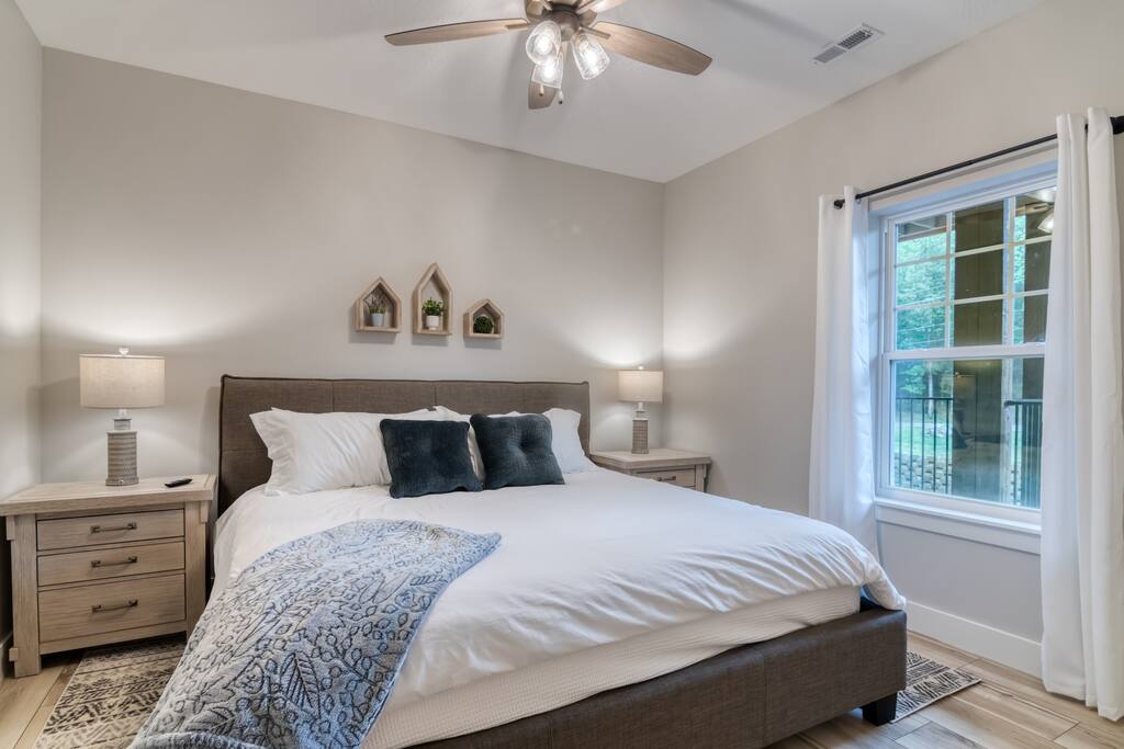 Experience the ultimate lakeside retreat at our brand new cozy and charming 3-bedroom condo on Lake Taneycomo. Enjoy breathtaking lake views, comfortable king beds with flat screen TVs, and a fully equipped kitchen with modern appliances. Take a dip in the complex's swimming pool (the hot tub is currently under repair) or explore downtown Branson's world-class entertainment and dining options just minutes away. Perfect for families, couples, or groups of friends. Anchor's Rest is a great option for families with kids attending Kanakuk camp as the condo is only a half mile down the road.